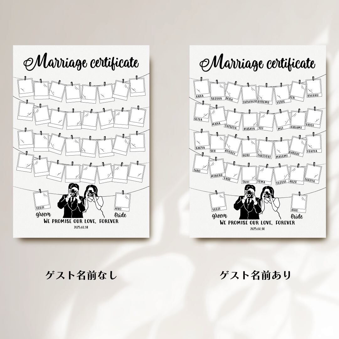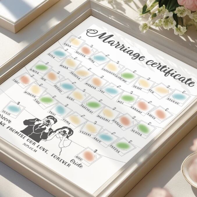 チェキ風のおしゃれなゲスト参加型結婚証明書♡