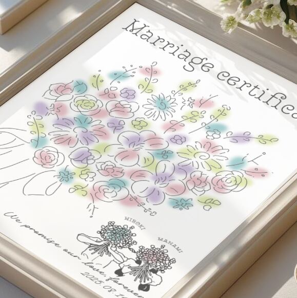 おしゃれなフラワーブーケのゲスト参加型結婚証明書♡
