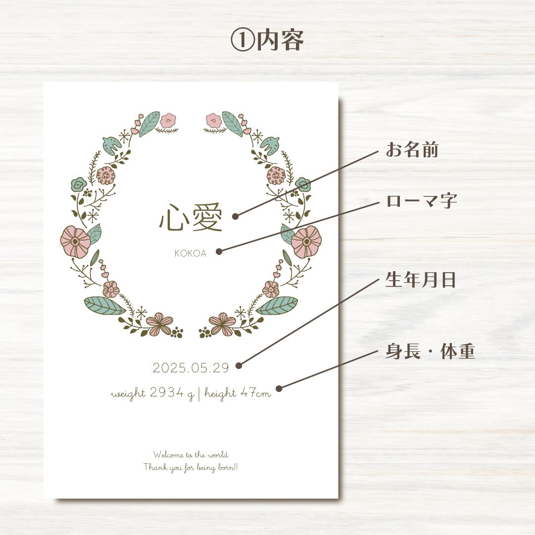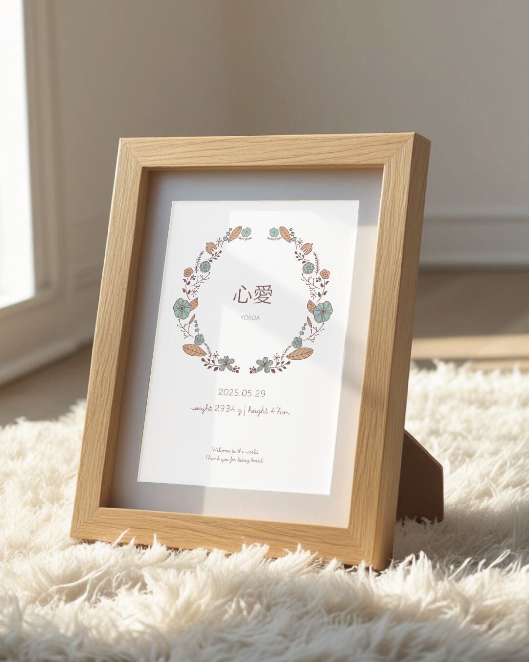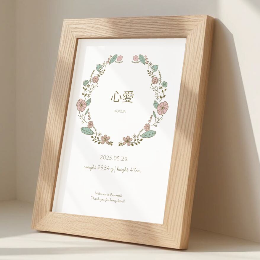命名書【北欧リース】 No. 171 ベビーポスター ネームポスター 漢字 名入れ ニューボーンフォト
