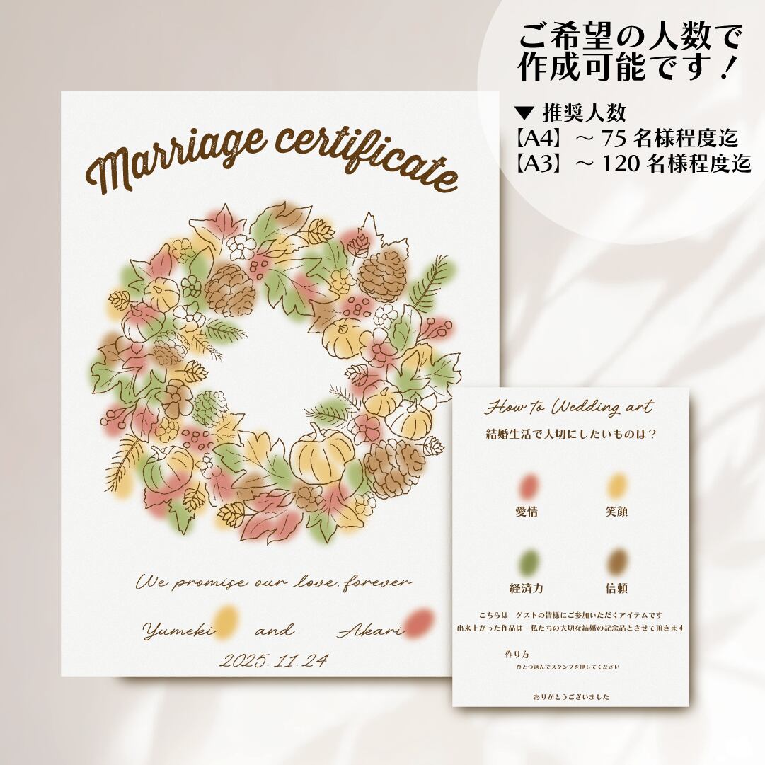 おしゃれな秋のフラワーリースのゲスト参加型結婚証明書♡