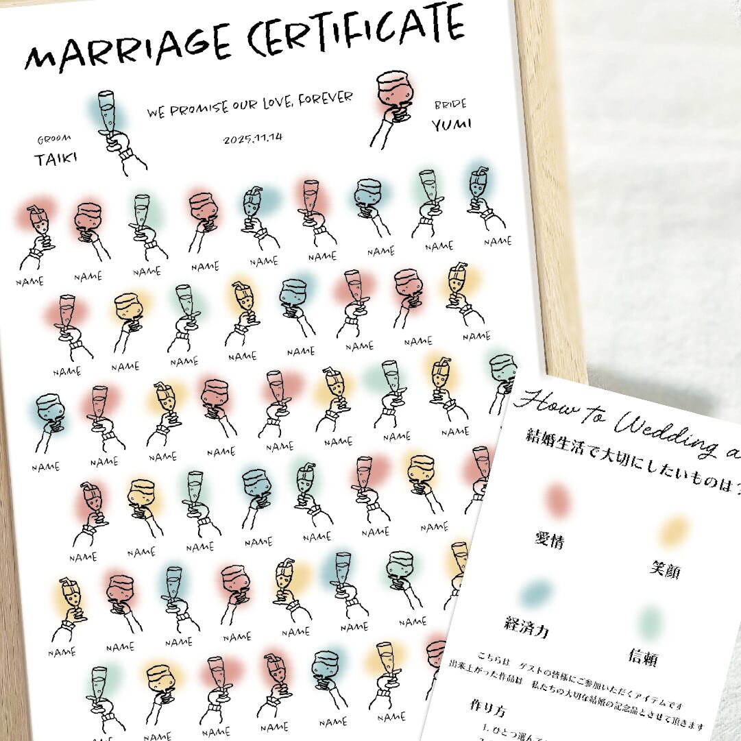 おしゃれな乾杯グラスのゲスト参加型結婚証明書♡