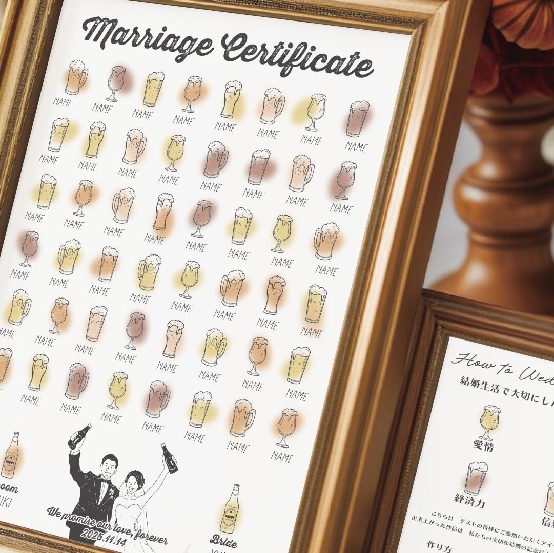 ビールやお酒好きのご夫婦にピッタリのゲスト参加型結婚証明書♡
