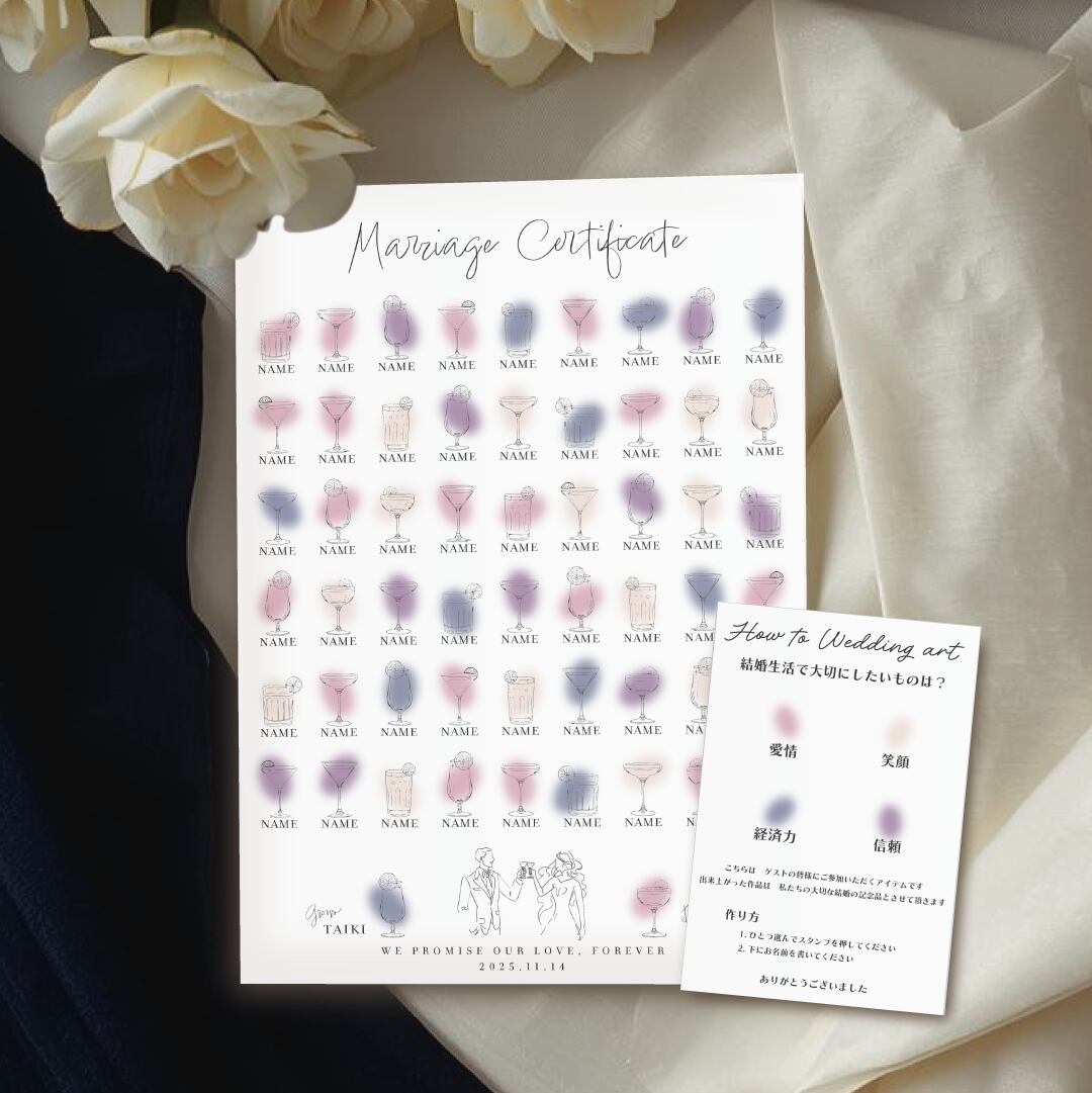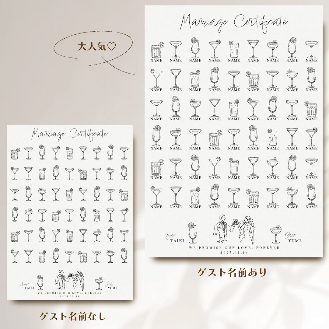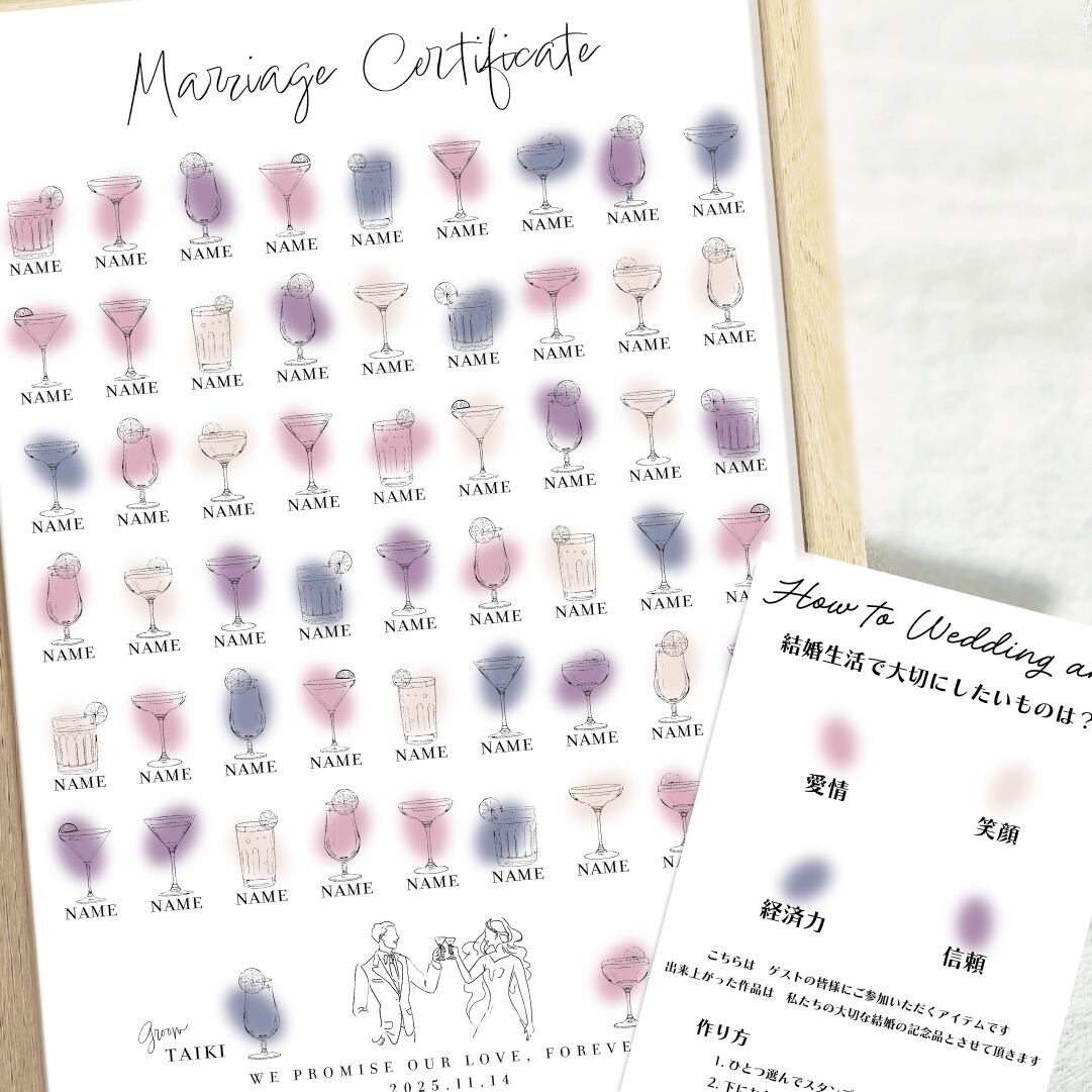 カクテルがかわいいゲスト参加型結婚証明書♡"