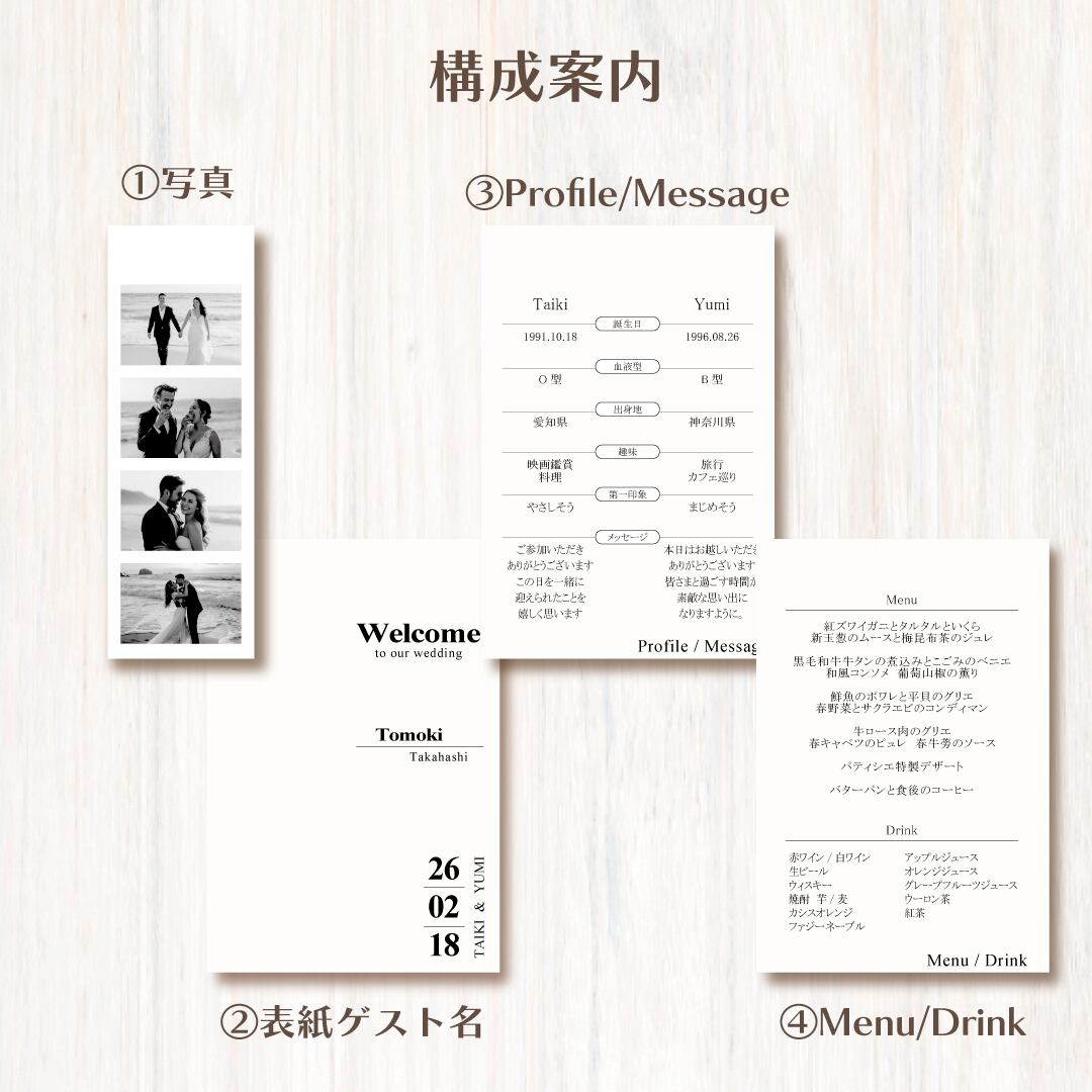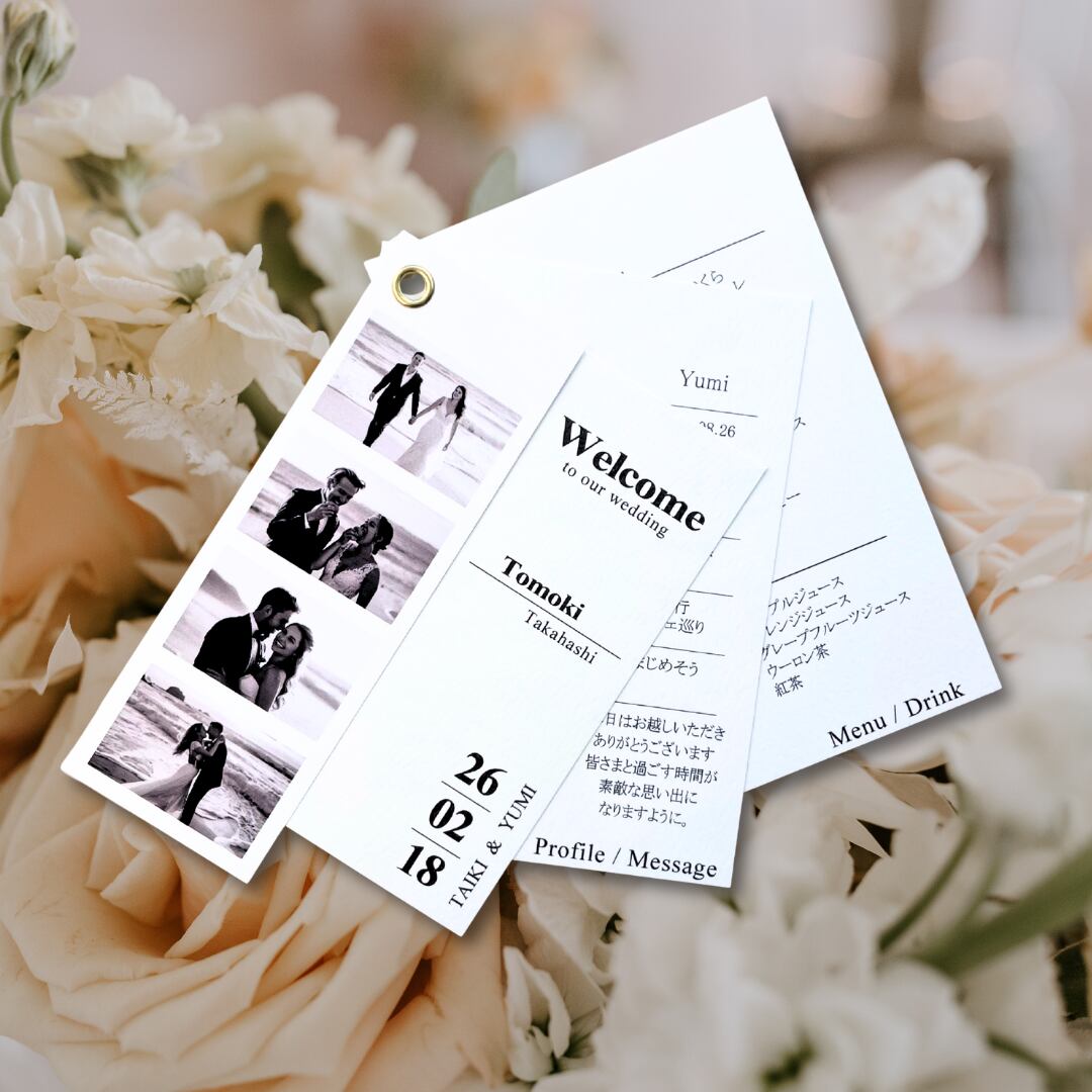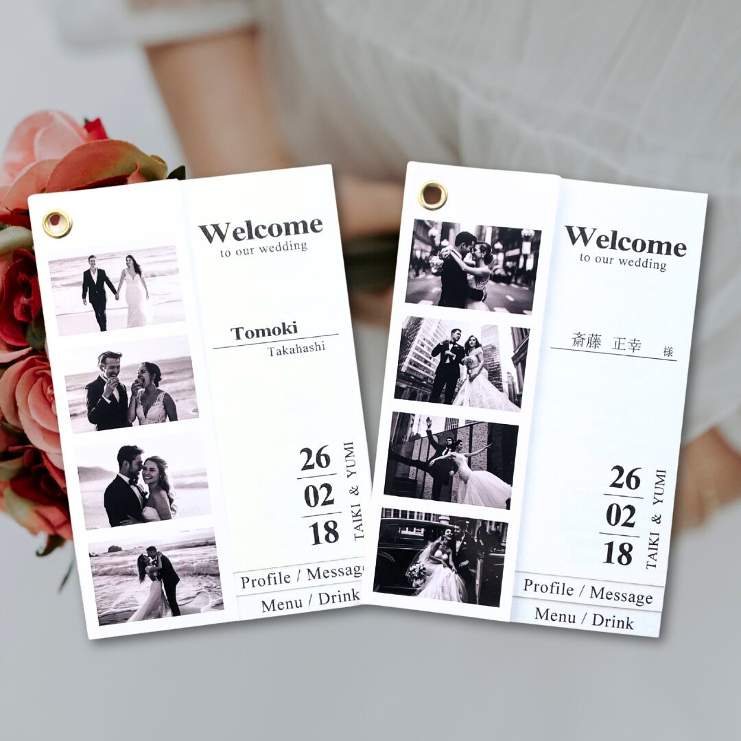 1部380円モノクロ【プリクラ風】席札 No. 239 結婚式 メニュー表 挨拶状 プロフィール ジィール風 海外風