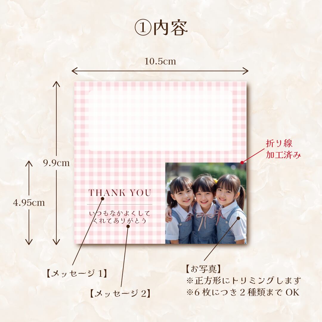 表面に写真とタイトル、裏面にはメッセージを書き込んで。
