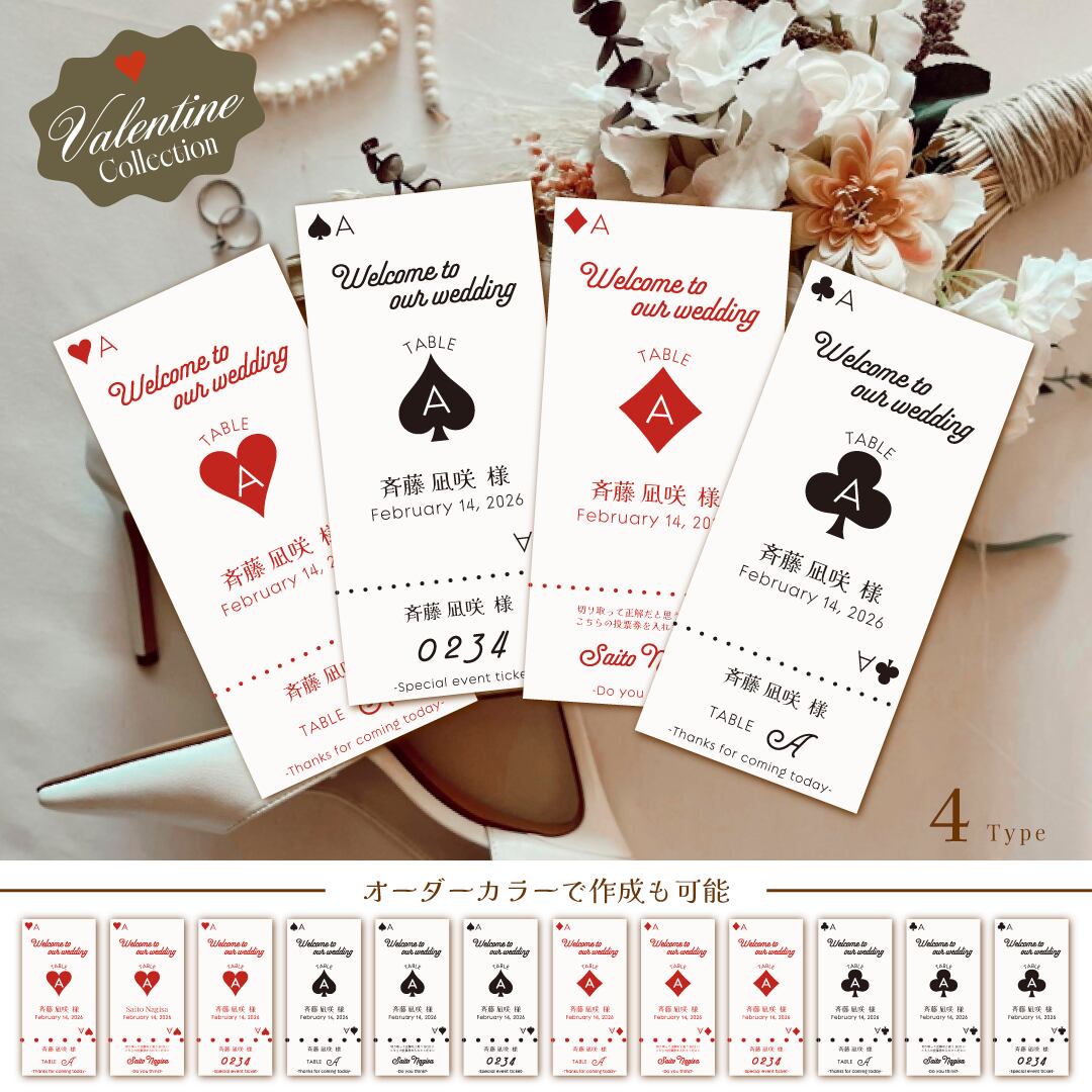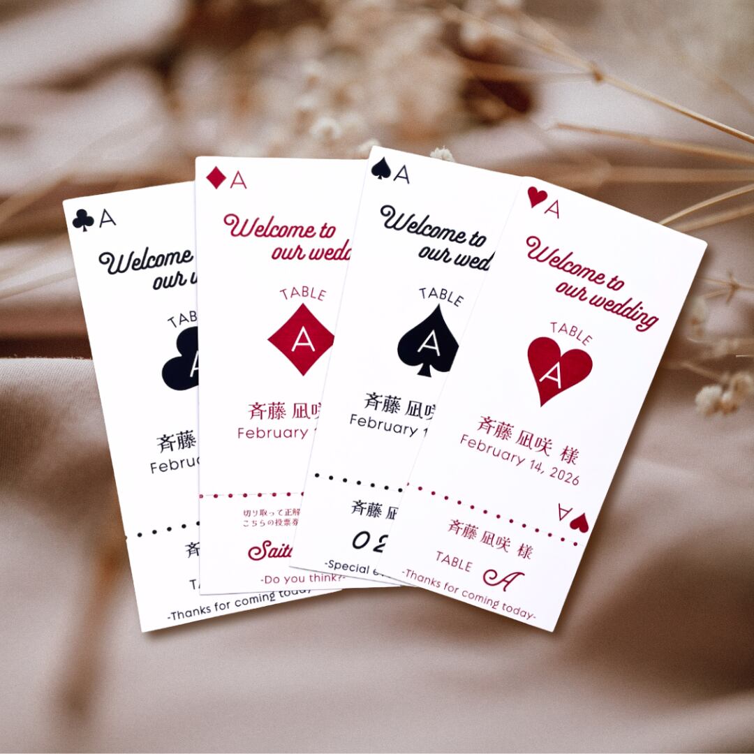 "バレンタインにぴったりな、トランプモチーフのエスコートカード。