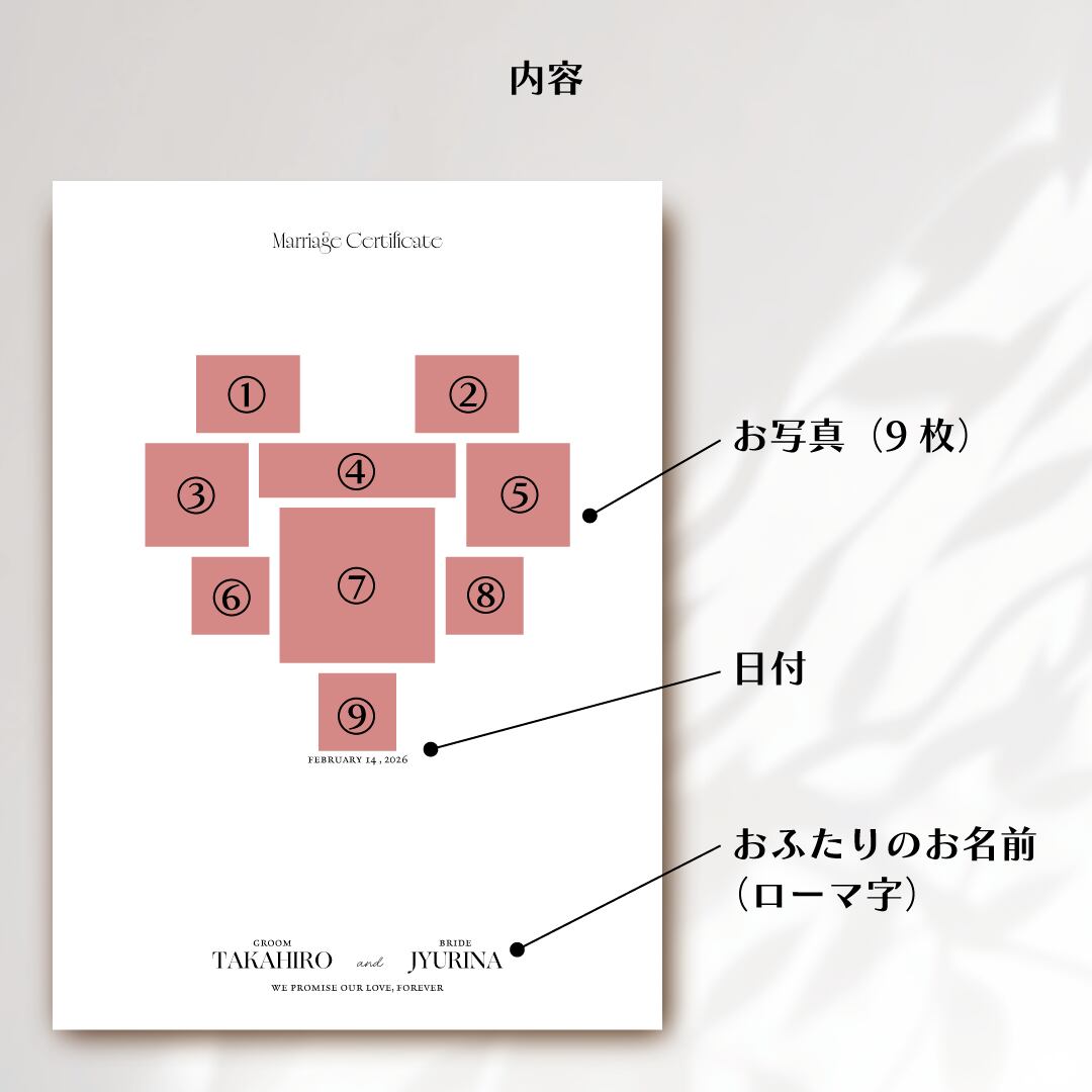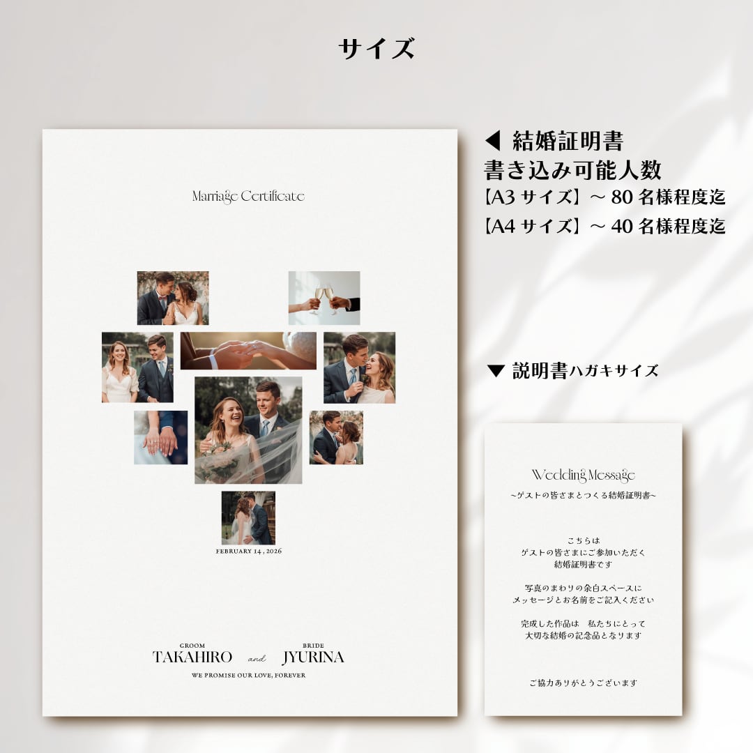 "ゲストのメッセージで完成する特別な結婚証明書です。