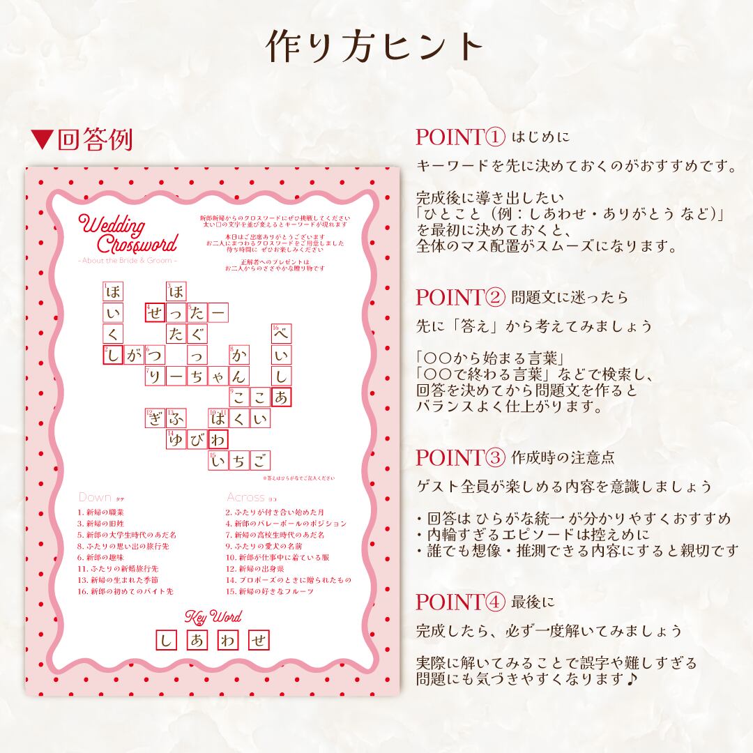 1枚100円クロスワード【ピンク×赤】 No. 277 WEDDING CROSSWORD ゲスト参加型