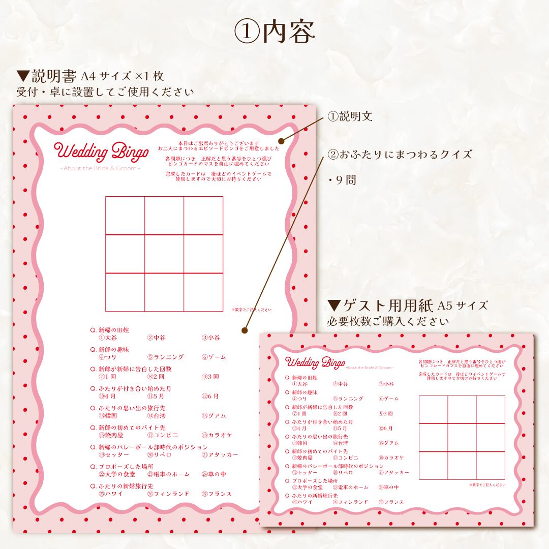 1枚100円ビンゴ【ピンク×赤】 No. 278 WEDDING BINGO ゲスト参加型