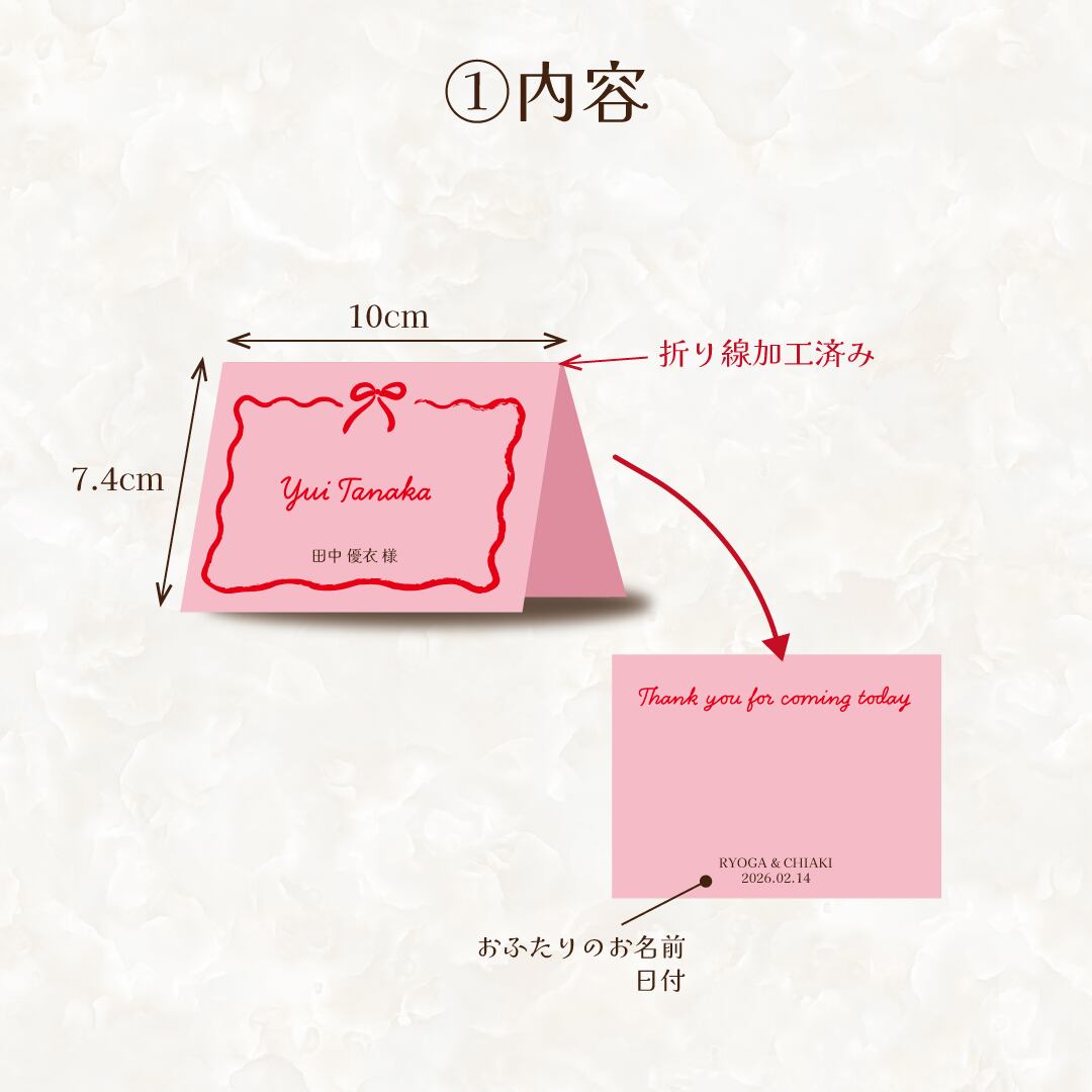 1枚80円席札【コーラル×赤】 No. 279 海外風 英語 漢字対応