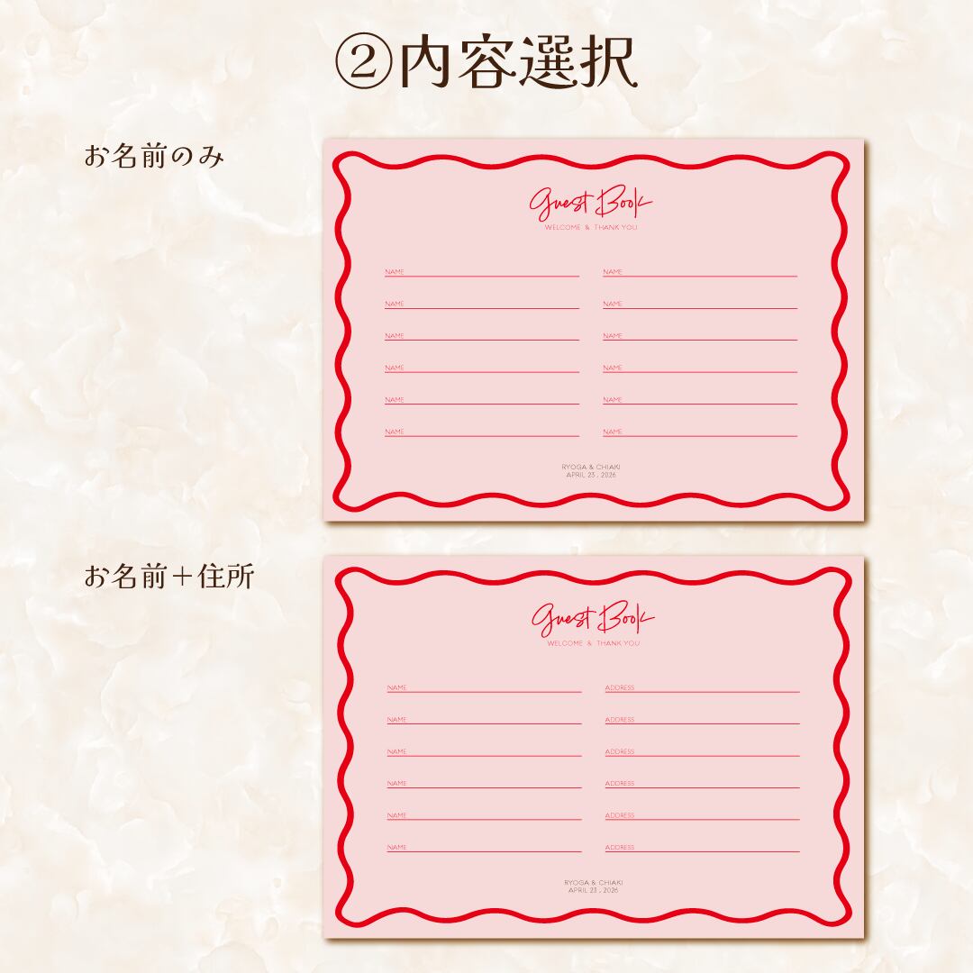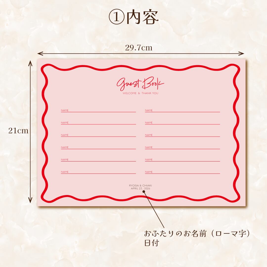 1枚200円芳名帳【ピンク×赤】 No. 280 海外風 ゲストブック