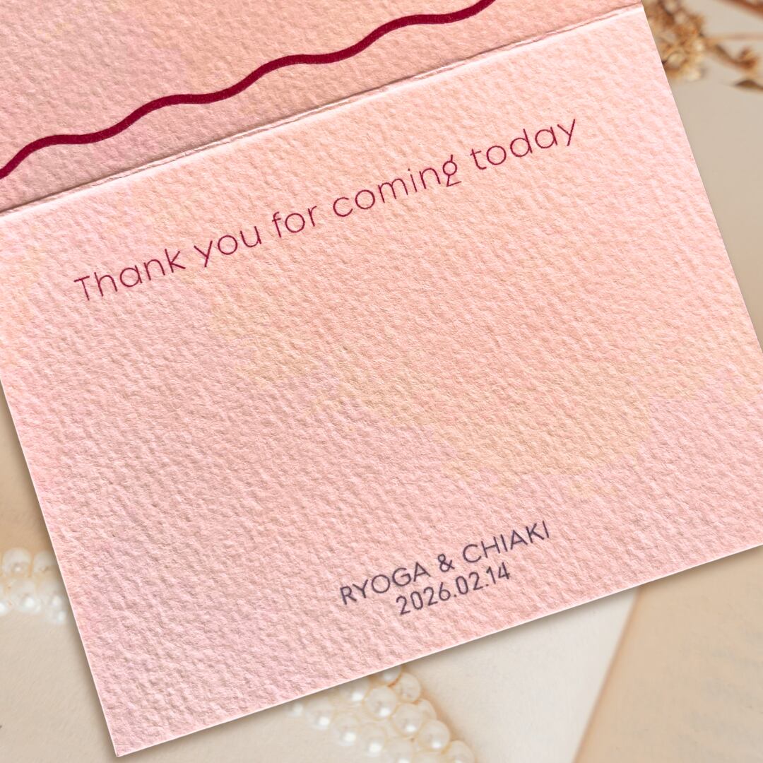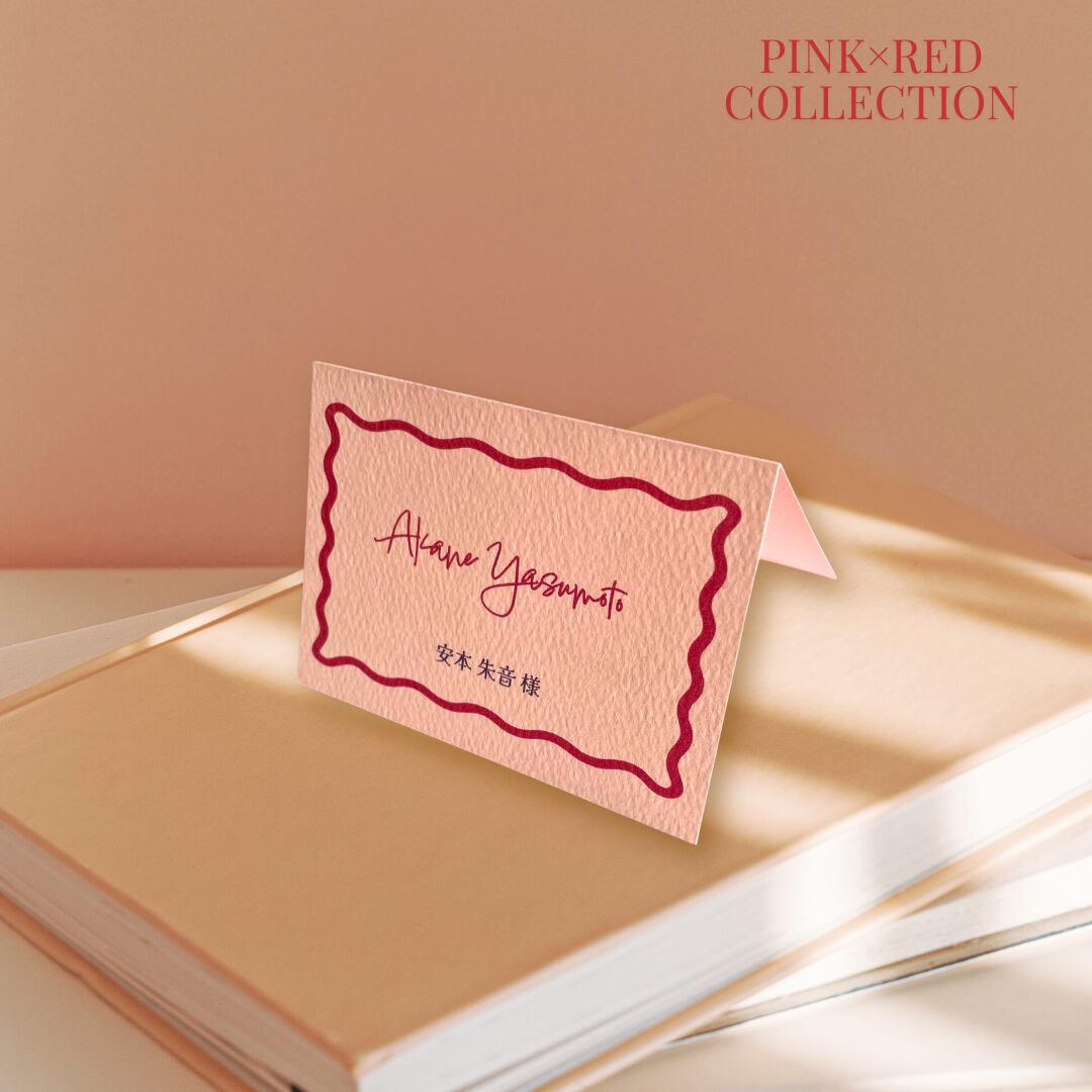 "ピンクマーメイド紙に、赤の曲線フレームをあしらった