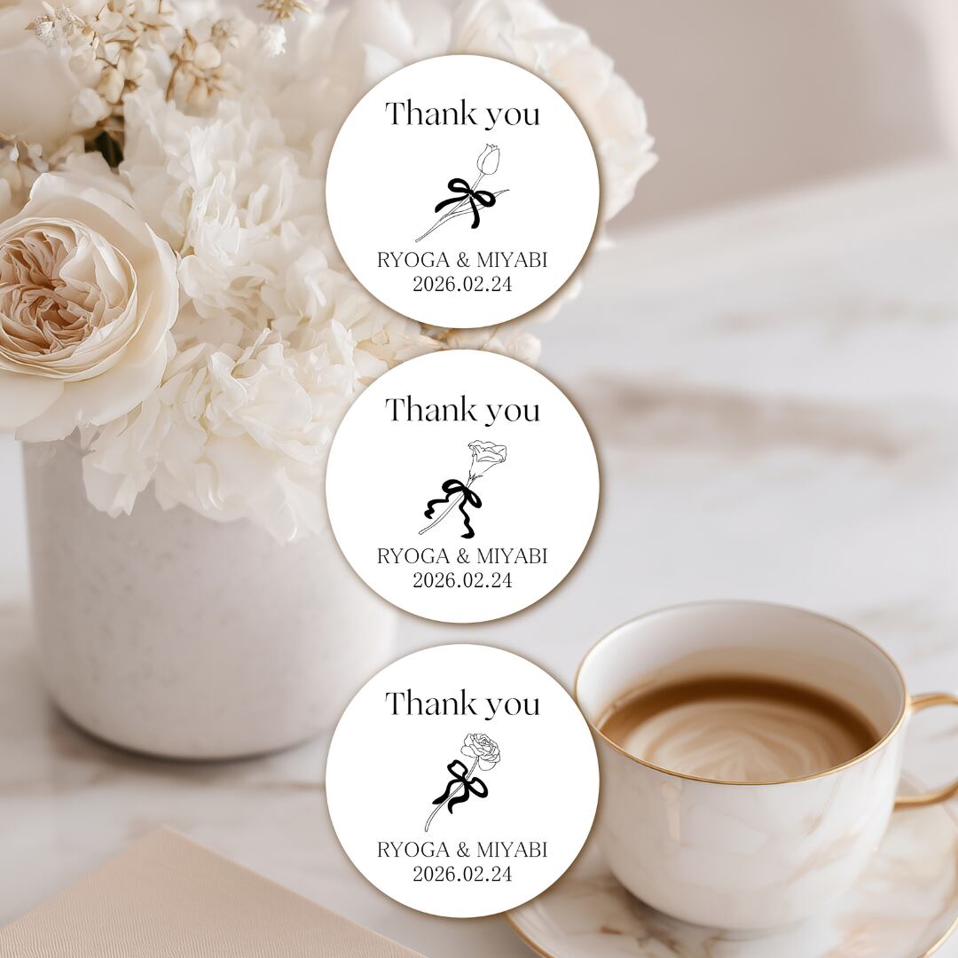 サンキューシール【フラワー】24枚セット No. 318 上品|結婚式 Thank youシール 名前入り 大人ウェディング プチギフト hank youシール 名前入り ウェディング