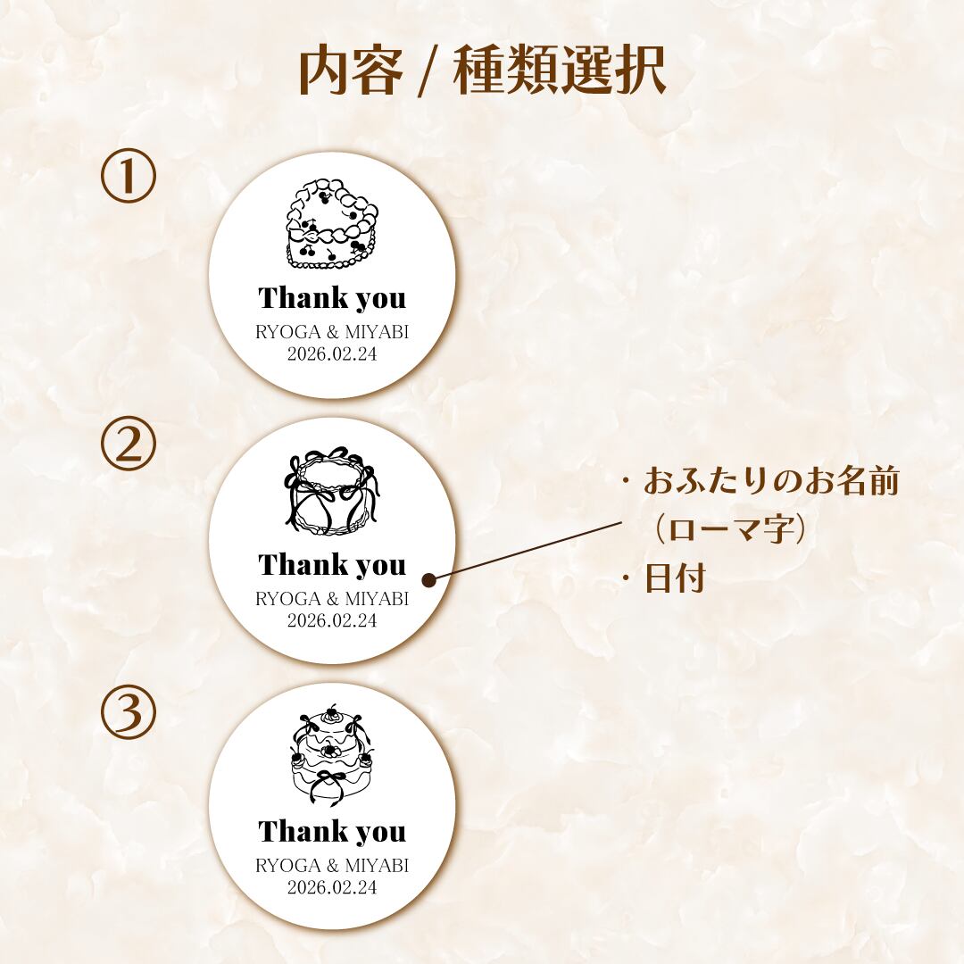 サンキューシール【ケーキ】24枚セット No. 319 フレンチガーリー|結婚式 プチギフト Thank youシール 名入れ 可愛い