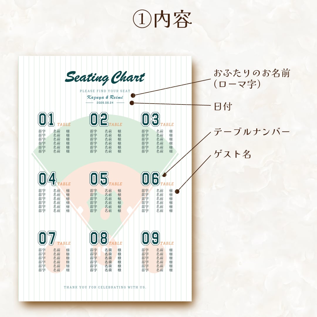 シーティングチャート【野球】 No. 340 結婚式 ウェルカムスペース 座席表 席次表